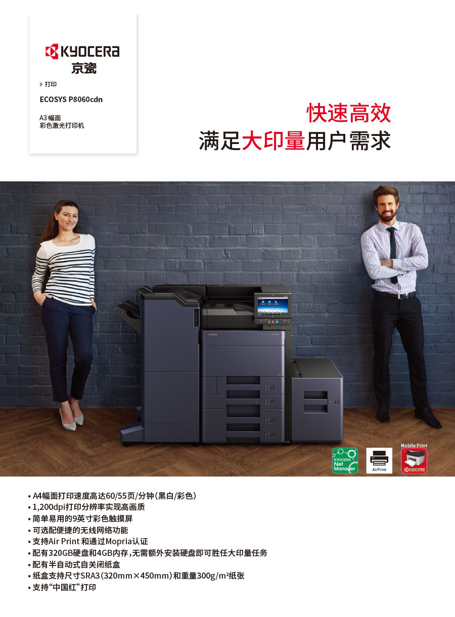 主要產品:KYOCERA京瓷激光打印機,一體機,復合機,生產型彩色噴墨數碼印刷系統(tǒng)及辦公信息系統(tǒng)的開發(fā)、設計、系統(tǒng)集成