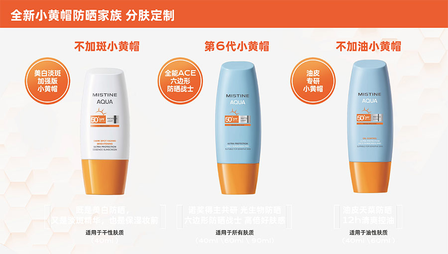 MISTINE蜜絲婷提出皮膚科學、前沿科技、靈魂成分、熱帶美學、卓越功效、保護環(huán)境六大品牌價值,致力于為全球女性提供豐富、安全、高品質(zhì)的美妝產(chǎn)品?;贛ISTINE蜜絲婷品牌首席顧問——全球計算生物學權(quán)威之一、諾貝爾化學獎得主Arieh Warshel的研究,MISTINE創(chuàng)新防曬品類推出「光生物學」防曬系統(tǒng),提出“外層防護、中層修護和底層抗損”防曬新理念,引領(lǐng)防曬從“表面防護”進入“深度抗光老”新時代。同時,MISTINE蜜絲婷還持續(xù)深耕專業(yè)彩妝市場,以熱帶美學基因造就產(chǎn)品防水防汗、高倍耐曬、長效持妝的優(yōu)勢,圍繞消費者需求打造多元化的產(chǎn)品矩陣,引領(lǐng)防曬、底妝賽道發(fā)展。