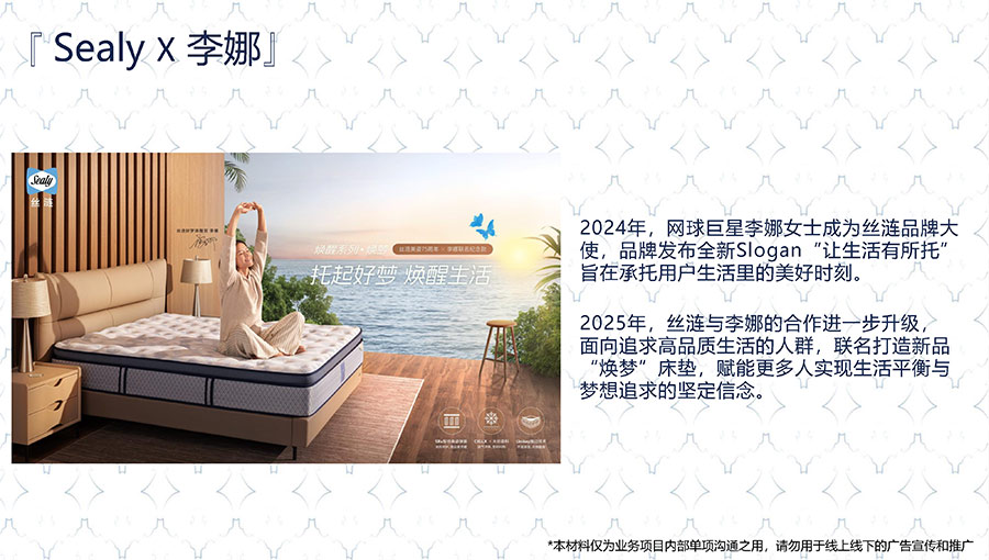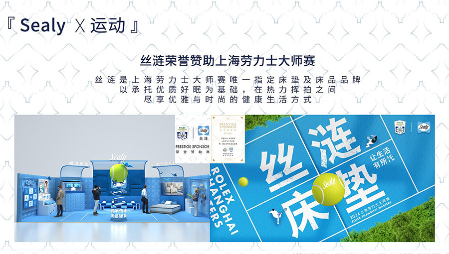 絲漣是上海勞力士大師賽唯一指定床墊及床品品牌,以承托優(yōu)質(zhì)好眠為基礎(chǔ),在熱力揮拍之間盡享優(yōu)雅與時尚的健康生活方式。
