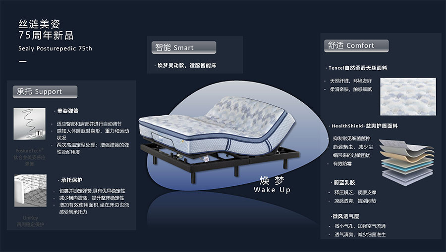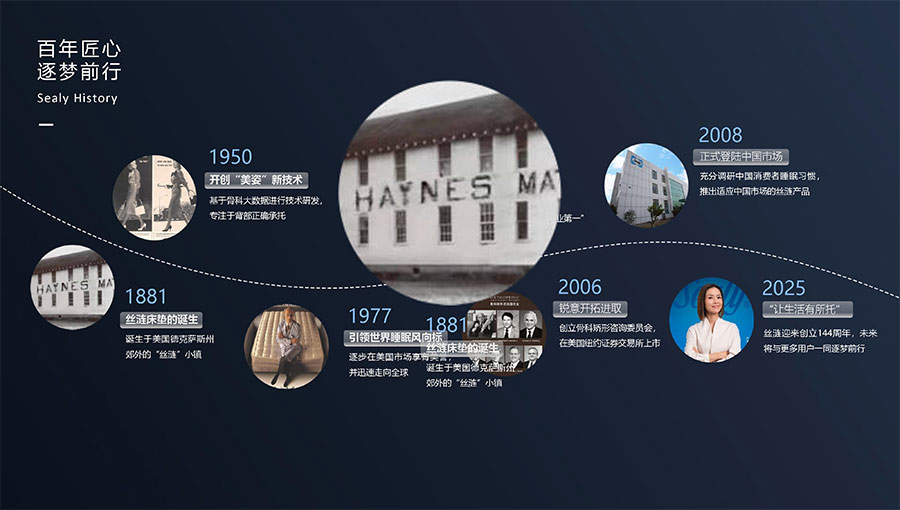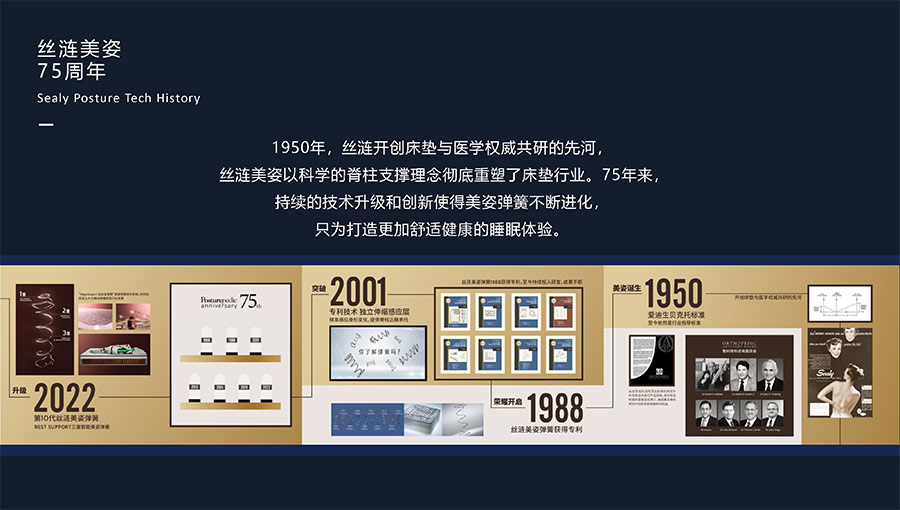 絲漣SEALY1881年誕生于美國,自1885年第一張絲漣床墊問世伊始,便憑借其卓越性能與舒適安睡體驗聲名大噪。1950年,絲漣開創(chuàng)床墊與醫(yī)學權(quán)威共研的先河,絲漣美姿以科學的脊柱支撐理念徹底重塑了床墊行業(yè)。75年來,持續(xù)的技術(shù)升級和創(chuàng)新使得美姿彈簧不斷進化,只為打造更加舒適健康的睡眠體驗。