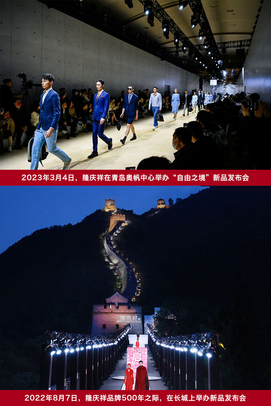 2022年8月7日,隆慶祥新品發(fā)布會在長城上舉辦,成為首個登上長城的民族服裝定制品牌。隆慶祥正在將一個百年老字號塑造成具備良好企業(yè)文化及核心競爭力的中國民族品牌。