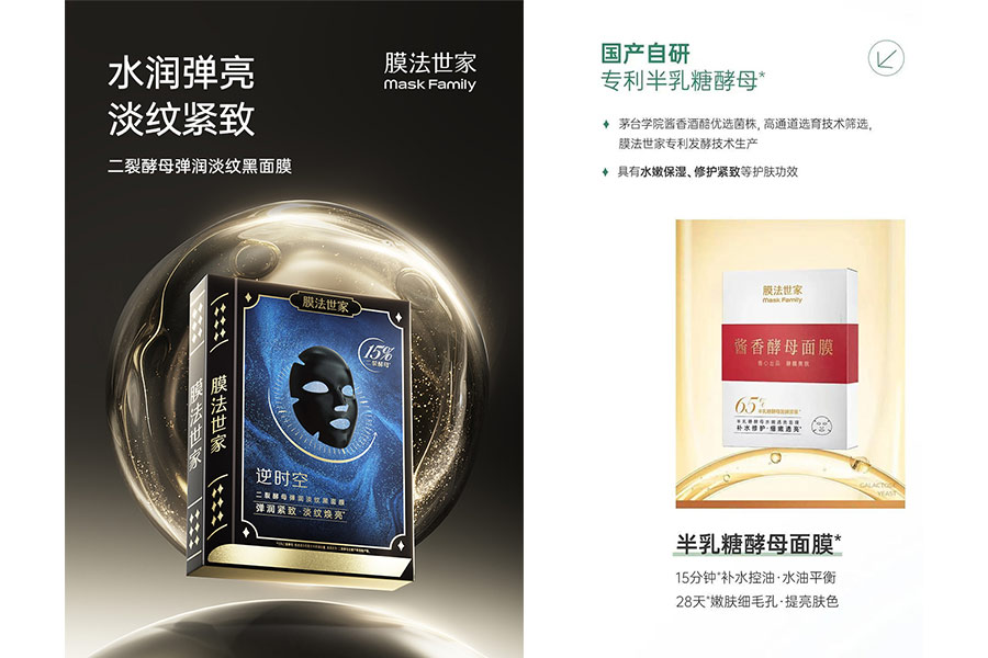 主要產(chǎn)品:膜法世家逆時空二裂酵母彈潤緊致黑面膜、膜法世家逆時空二裂酵母彈潤淡紋黑面膜、膜法世家紫草泥清潔面膜、膜法世家綠豆清潔泥膜(經(jīng)典版)、膜法世家綠豆清潔泥膜(祛痘版)、二裂酵母彈潤緊致精華液