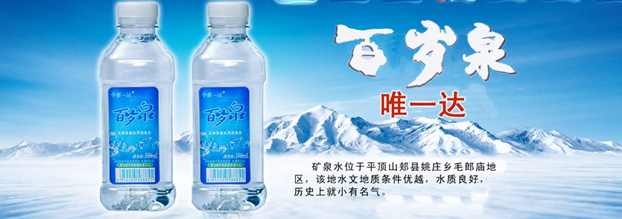 水是生命之源,科學(xué)飲水是健康第一要素。為滿足人們不斷上升的礦泉水質(zhì)量和品位的要求,湖南百歲泉飲品有限公司在全國各地多年研究、考察,終于在有幾千年文化歷史的茶馬古道——郟縣毛郎廟,找到了適合中國人體質(zhì)特點的健康、優(yōu)質(zhì)礦泉水——“唯一達百歲泉”。目前,湖南百歲泉飲品有限公司全權(quán)負(fù)責(zé)“唯一達百歲泉”中國區(qū)總經(jīng)銷權(quán),得到郟縣政府大力支持。