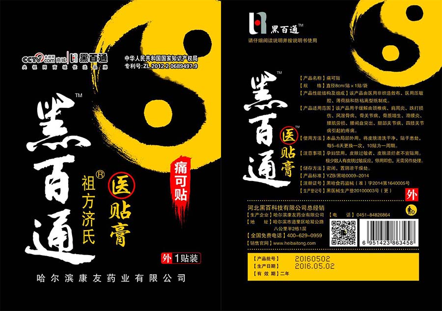 2016年成立河北黑百科技有限公司,“黑百通醫(yī)貼膏”目前正熱銷全國。“誠信、團結(jié)、拼搏、創(chuàng)新”是哈爾濱康友藥業(yè)有限公司全體員工執(zhí)著追求的企業(yè)理念。本企業(yè)始終把全體員工的工作意識,融匯到產(chǎn)品生產(chǎn)和售后服務的每個環(huán)節(jié),實施全面質(zhì)量管理,建立、健全質(zhì)量保證體系。