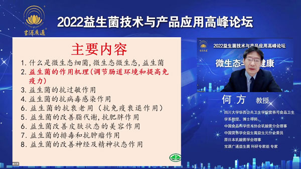 何方教授從益生菌對人體健康的眾多重要作用,又從科研實(shí)驗(yàn)及國內(nèi)外全球視角把益生菌的功能、產(chǎn)品應(yīng)用做了專業(yè)講解。對寶源廣通益生菌的菌株、高活菌等科學(xué)組方做了分析推薦。