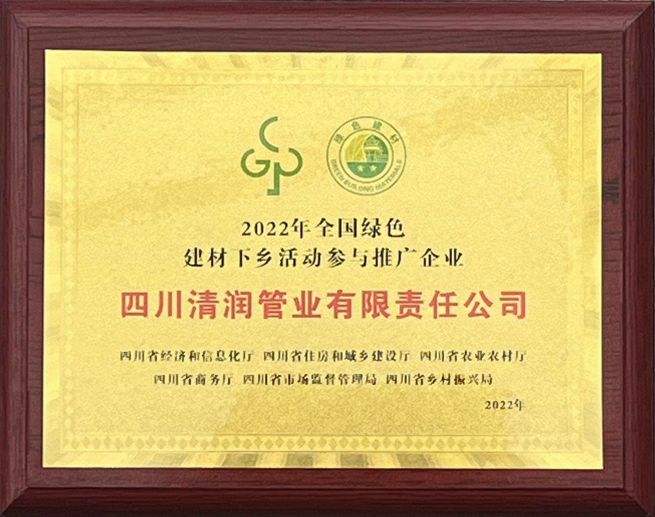 “清潤”自成立以來,便以“打造安全的城市地下生命線”為己任,先后為農(nóng)飲工程、四川大學(xué)、西南民族大學(xué)、第31屆世界大學(xué)生夏季運(yùn)動(dòng)會場館等項(xiàng)目供應(yīng)了一系列的優(yōu)質(zhì)給水管材管件產(chǎn)品,得到了市場廣大客戶和社會各界的一致肯定。公司先后獲得了“四川名牌”、成都市市級守合同重信用企業(yè)稱號,入選《全國農(nóng)村飲水安全工程材料設(shè)備產(chǎn)品信息年報(bào)》、《成都市地方產(chǎn)品配套目錄》,信用等級AA級,成為中國塑料加工工業(yè)協(xié)會塑料管道專業(yè)委員會理事單位、中國工業(yè)防腐蝕技術(shù)協(xié)會、四川燃?xì)鈪f(xié)會等協(xié)會會員單位。2022年,在全國綠色建材產(chǎn)品四川站啟動(dòng)會上,四川清潤管業(yè)還作為優(yōu)秀代表企業(yè)獲得授牌。