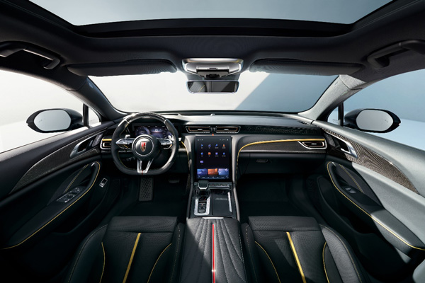 在內(nèi)飾設(shè)計方面,紅旗H6以“環(huán)懸科技”概念,采用流動輕盈的整體架構(gòu),為駕乘者帶來尊貴體驗。超大中控豎屏、“金盞黃+黑色”內(nèi)飾、“真皮+碳纖維”方向盤、運(yùn)動座椅、全液晶儀表盤、精致簡潔的門板和飾條設(shè)計,在傳承家族“中軸式布局”的基礎(chǔ)上,呈現(xiàn)出兼具豪華尊享、智慧科技、激情動感的風(fēng)尚氣息。