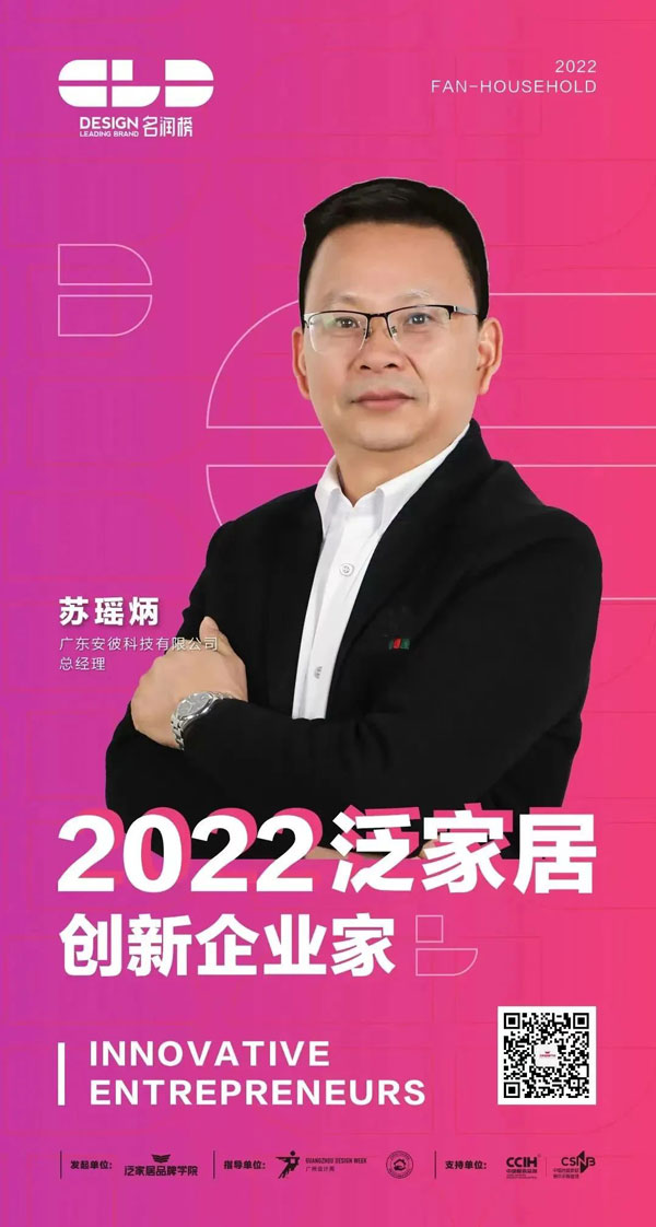 本次頒獎典禮同時揭曉了“創(chuàng)新企業(yè)家”獎項的評選結果,安彼衛(wèi)浴總經(jīng)理蘇瑤炳榮獲“2022泛家居創(chuàng)新企業(yè)家”稱號。在安彼衛(wèi)浴企業(yè)發(fā)展過程中,蘇瑤炳總經(jīng)理始終堅持品牌戰(zhàn)略,把創(chuàng)新的設計注入到品牌和產(chǎn)品之中,主導多項產(chǎn)品的發(fā)明專利、實用新型專利、外觀設計專利等項目,研發(fā)的產(chǎn)品AB-3343獲評中國水效領跑者,推動安彼衛(wèi)浴高質量發(fā)展,也為國內(nèi)外市場增加了更多節(jié)水型衛(wèi)生陶瓷產(chǎn)品。同時,蘇瑤炳總經(jīng)理現(xiàn)任全國建筑衛(wèi)生陶瓷標準化技術委員會委員、全國工業(yè)節(jié)水標準化技術委員會委員,參與起草制定了GB 6952-2015《衛(wèi)生陶瓷》及GB 38448-2019《智能坐便器能效水效限定值及等級》等多項國家標準,推動行業(yè)的整體質量水平提升和標準化事業(yè)發(fā)展。獲此殊榮,不僅是對蘇瑤炳總經(jīng)理個人的認可,也是對安彼衛(wèi)浴創(chuàng)新發(fā)展的肯定,同時激發(fā)了安彼衛(wèi)浴不斷進取、奮勇向前的決心。