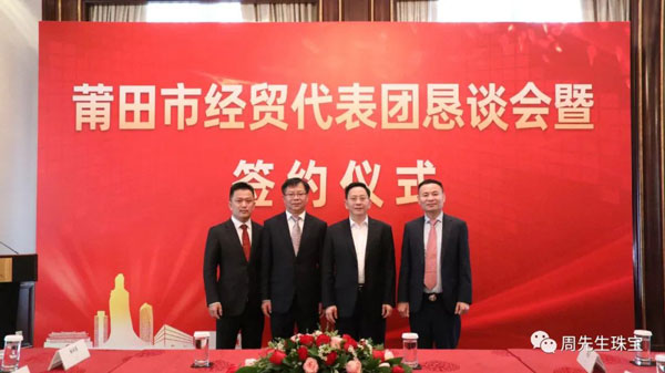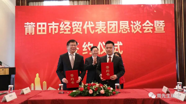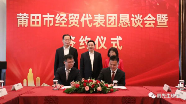 懇談會(huì)期間,莆田經(jīng)貿(mào)代表團(tuán)與眾多莆仙籍企業(yè)家面對(duì)面交流,就共同推進(jìn)項(xiàng)目合作達(dá)成諸多意向,舉行了簽約儀式。香港周先生珠寶金行國(guó)際集團(tuán)有限公司作為應(yīng)邀出席的企業(yè)之一,在眾多領(lǐng)導(dǎo)的見證下簽署“香港周先生珠寶金行國(guó)際集團(tuán)有限公司供應(yīng)鏈平臺(tái)”項(xiàng)目合作協(xié)議 。
