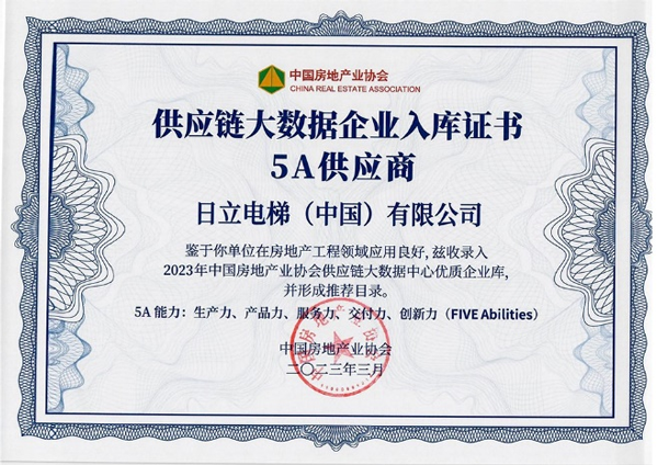 同時(shí),日立電梯憑借在“生產(chǎn)力、產(chǎn)品力、服務(wù)力、交付力、創(chuàng)新力”的出色表現(xiàn),成為中國(guó)房地產(chǎn)業(yè)協(xié)會(huì)供應(yīng)鏈大數(shù)據(jù)中心“5A供應(yīng)商” 入庫企業(yè)。