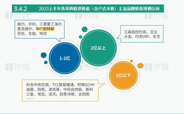 作為“熱泵行業(yè)領軍品牌”的中廣歐特斯,從2018年起逐步轉型向暖通與舒適家居領域滲透。經過多年積累,中廣歐特斯在2023年上半年依然保持著逆勢而上的發(fā)展優(yōu)勢,在主流品牌3億以下銷售規(guī)模中占據頭部位置。