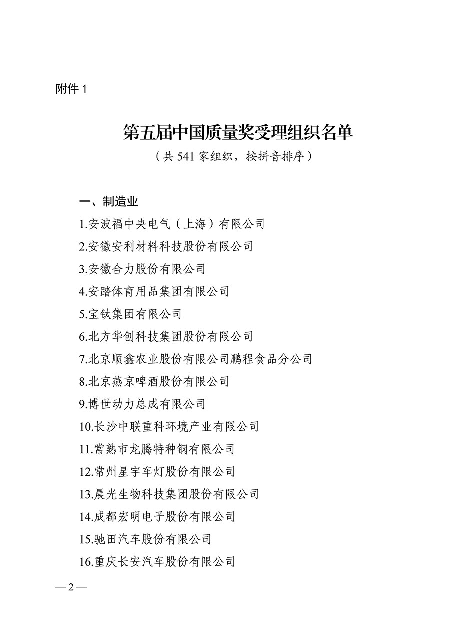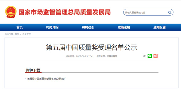 第五屆中國(guó)質(zhì)量獎(jiǎng)受理名單公示(附全名單)