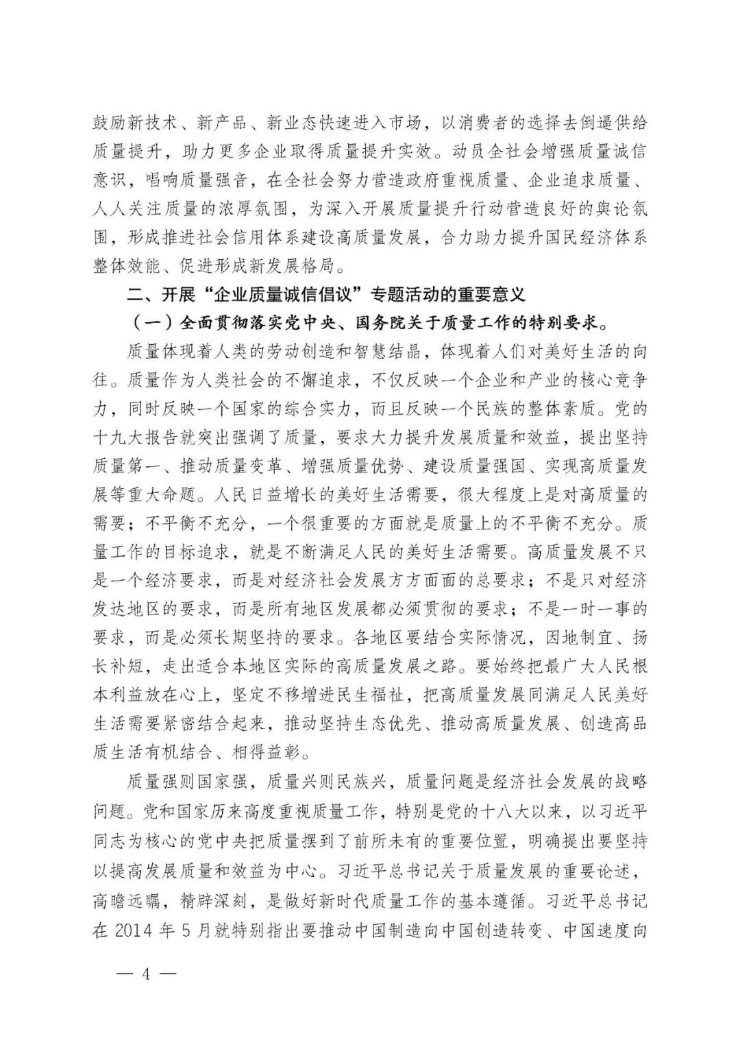 (央視新聞聯(lián)播9月1日?qǐng)?bào)道) 2022年全國(guó)“質(zhì)量月”活動(dòng)拉開帷幕。中共中央政治局常委、國(guó)務(wù)院總理李克強(qiáng)作出重要批示。批示指出:質(zhì)量是立業(yè)之本、強(qiáng)國(guó)之基,事關(guān)民生福祉。各地區(qū)、各有關(guān)部門要以習(xí)近平新時(shí)代中國(guó)特色社會(huì)主義思想為指導(dǎo),認(rèn)真貫徹黨中央、國(guó)務(wù)院決策部署,牢固樹立質(zhì)量第一意識(shí),推動(dòng)經(jīng)濟(jì)發(fā)展不斷提高質(zhì)量效益。要加強(qiáng)政策引導(dǎo),深入推進(jìn)全面質(zhì)量管理,優(yōu)化產(chǎn)業(yè)鏈供應(yīng)鏈質(zhì)量管理。引導(dǎo)企業(yè)弘揚(yáng)工匠精神,落實(shí)主體責(zé)任,走以質(zhì)量取勝的路子,著力依靠創(chuàng)新推進(jìn)質(zhì)量攻關(guān),打造集質(zhì)量、標(biāo)準(zhǔn)、技術(shù)、品牌等于一體的高品質(zhì)產(chǎn)品和服務(wù),在市場(chǎng)競(jìng)爭(zhēng)中鍛就中國(guó)質(zhì)量、培育中國(guó)精品。要聚焦民生關(guān)切,創(chuàng)新監(jiān)管方式,堅(jiān)持對(duì)質(zhì)量安全問題“零容忍”,開展質(zhì)量惠民行動(dòng),更好滿足人民群眾需求。要提升服務(wù)效能,廣泛開展質(zhì)量管理等技術(shù)服務(wù),助力企業(yè)不斷增強(qiáng)質(zhì)量發(fā)展能力。各方面共同努力,深入實(shí)施質(zhì)量強(qiáng)國(guó)戰(zhàn)略,為經(jīng)濟(jì)社會(huì)高質(zhì)量發(fā)展和國(guó)家現(xiàn)代化建設(shè)作出更大貢獻(xiàn)。